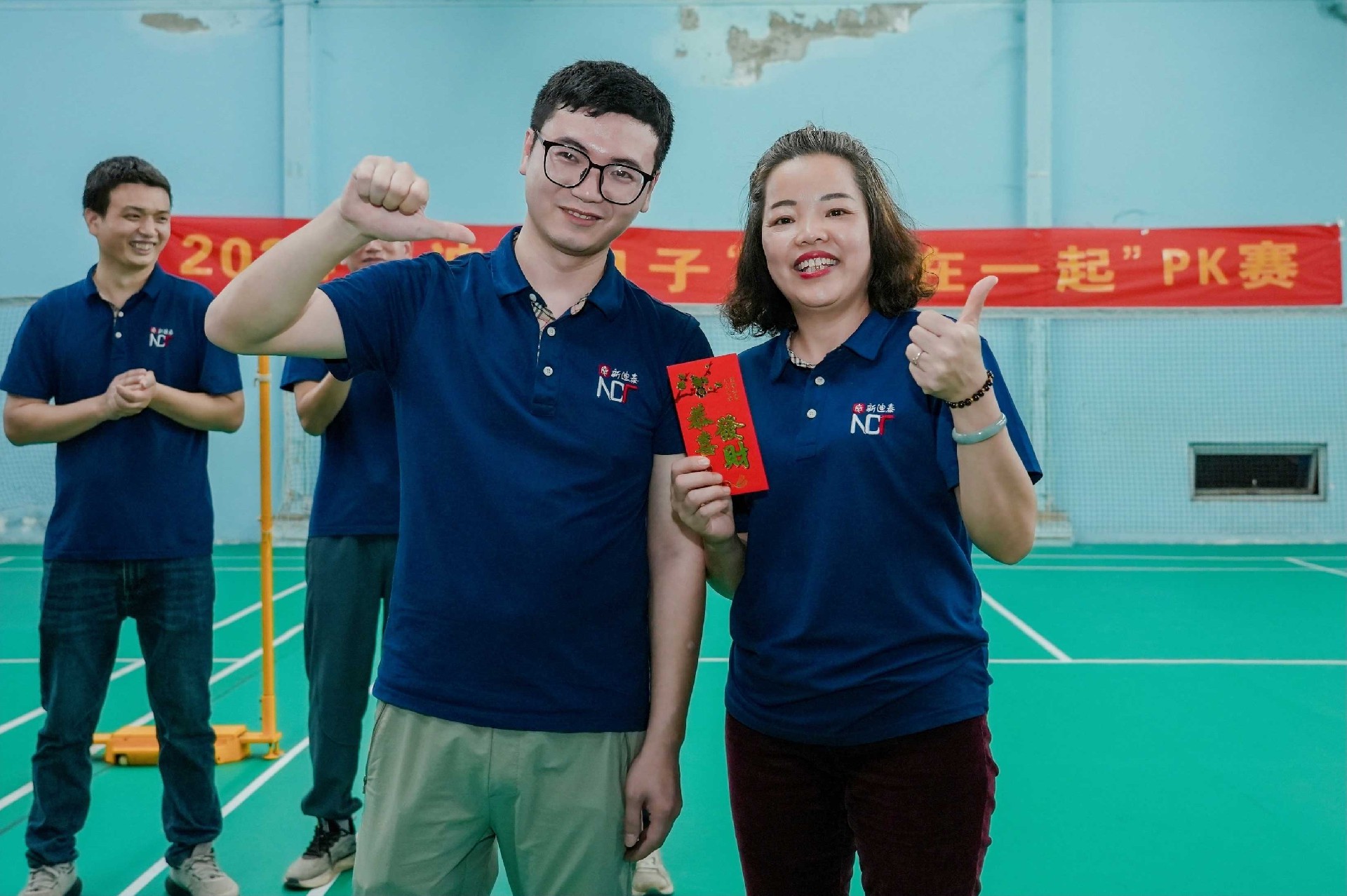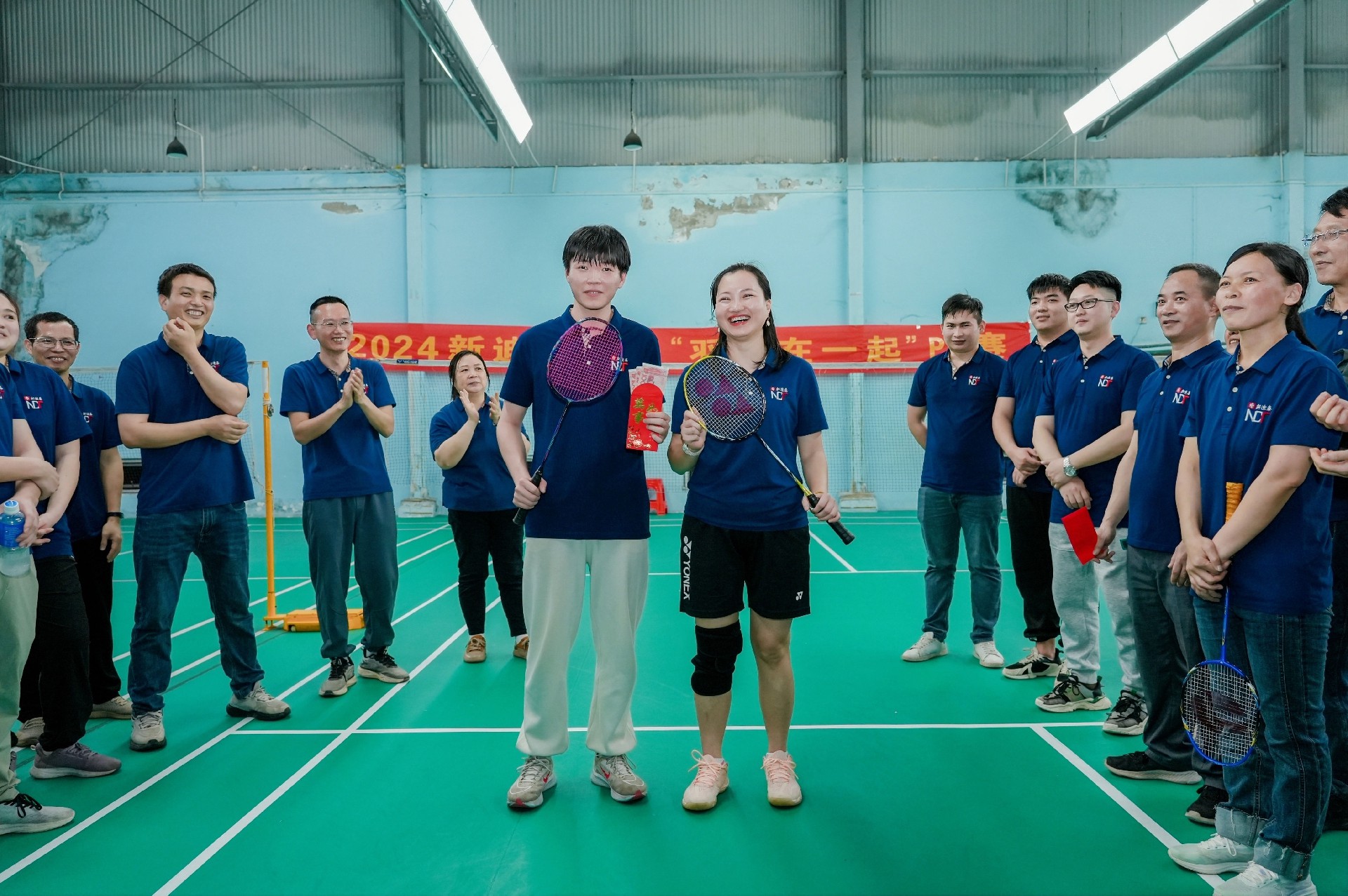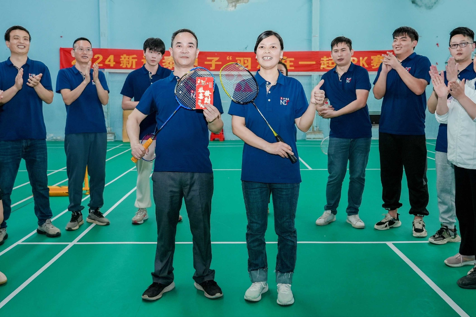 大家早早地来到了羽毛球场地,热情洋溢打着招呼。
