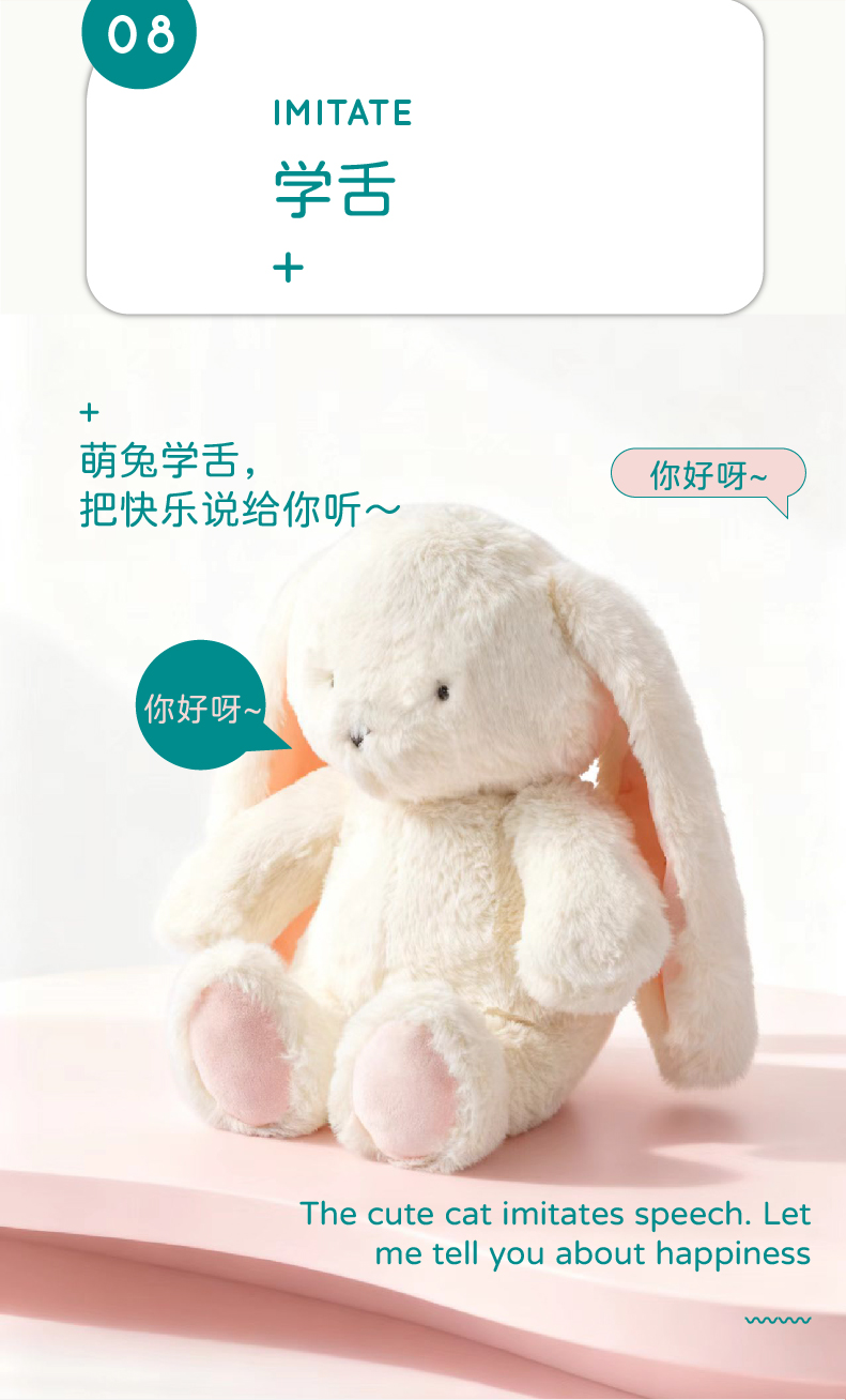 材质:兔毛、100%PP棉填充、硅胶爪、硅胶鼻、加重胶粒。