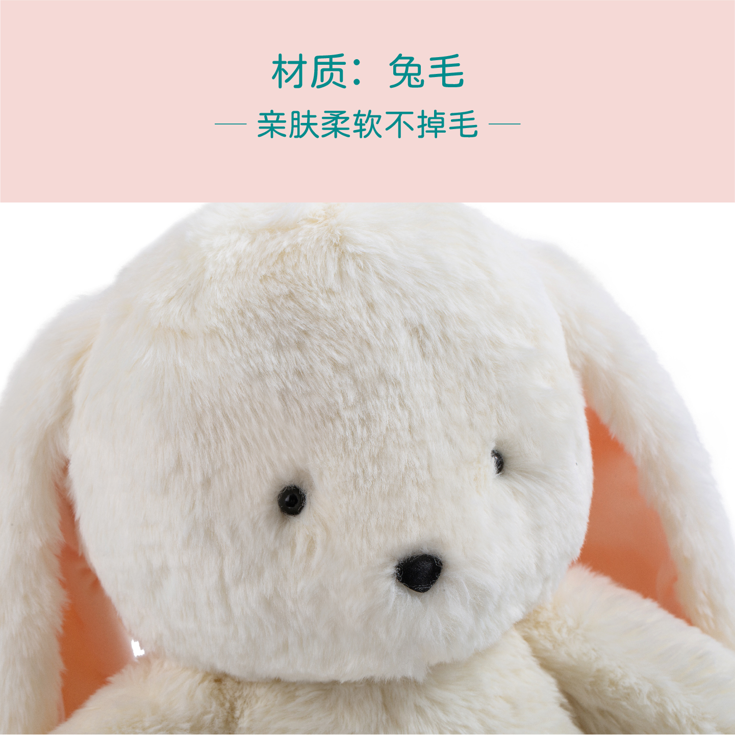 材质:兔毛、100%PP棉填充、硅胶爪、硅胶鼻、加重胶粒。