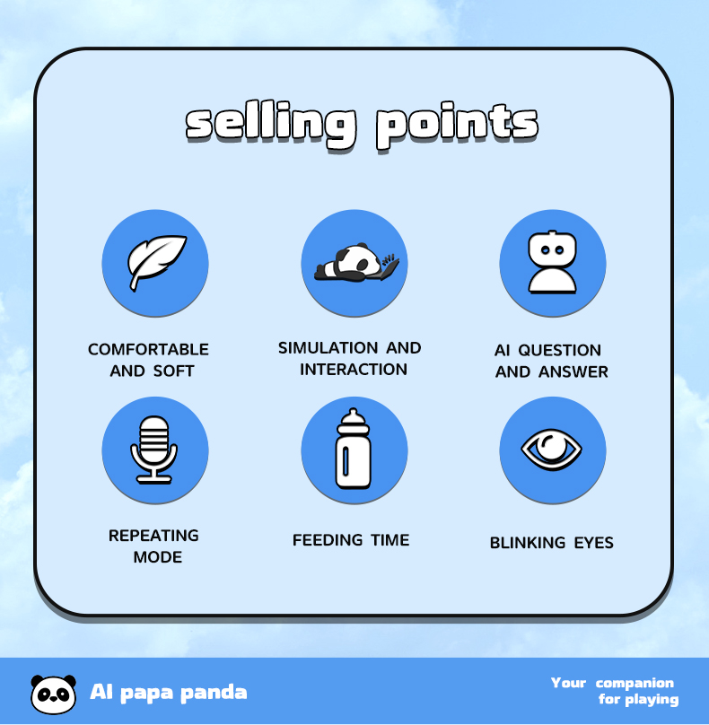 摸头:随机播放8种熊猫叫声并眨眼。