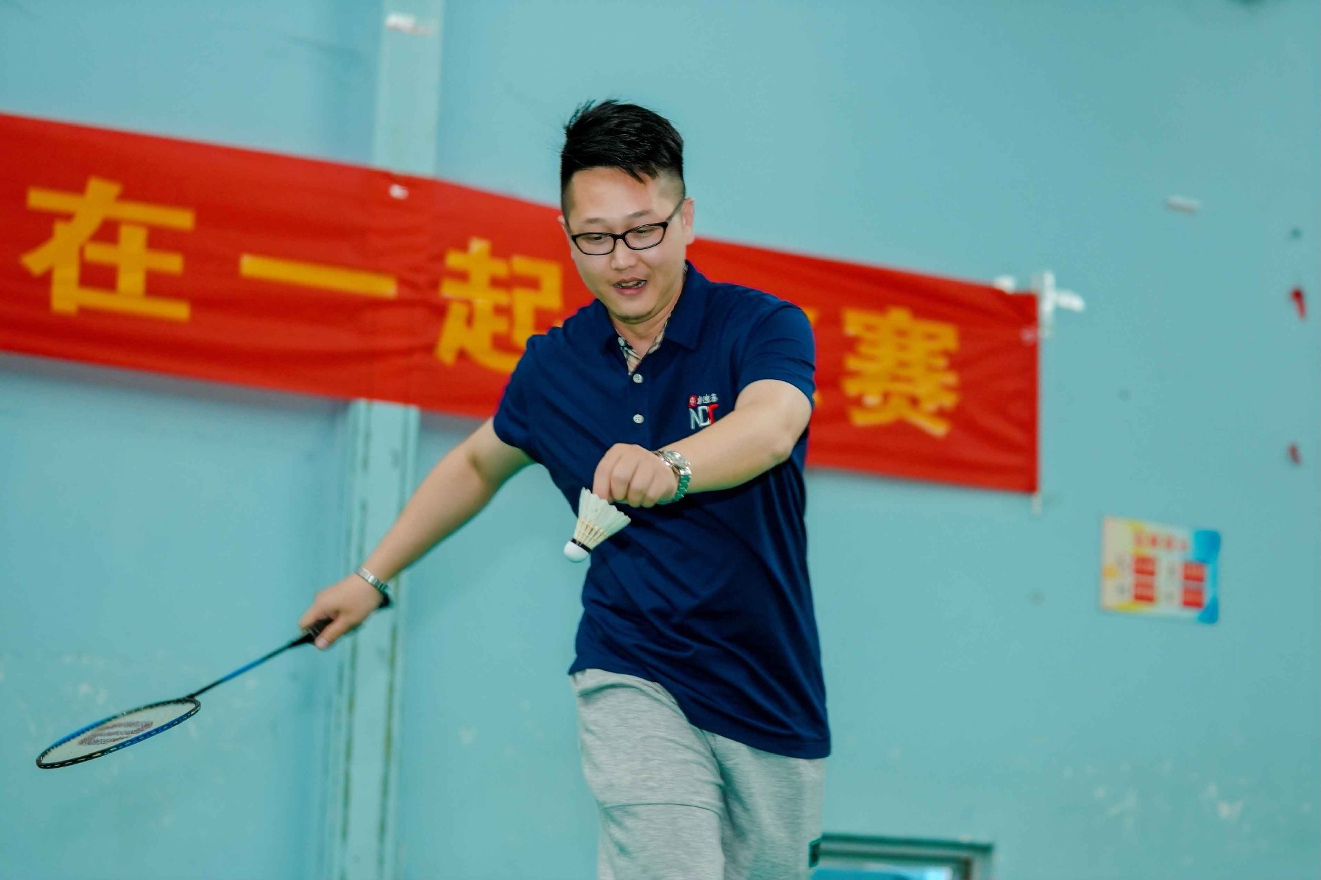 大家早早地来到了羽毛球场地,热情洋溢打着招呼。